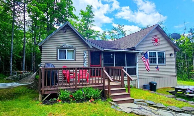 Nestled near Moosehead Lake, Maine, this charming cabin offers rustic tranquility with deeded dock, ATV, and snowmobile access. Enjoy a porch with Adirondack chairs and grill. Inside, a cozy living room with propane fireplace and TV, a small kitchen, two bedrooms, and an open loft provide comfort. Perfect for year-round outdoor enthusiasts seeking relaxation and adventure in a picturesque setting.