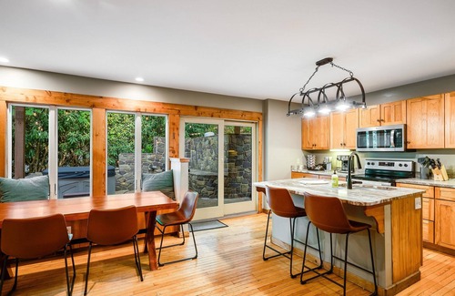 Our cabin is spacious yet cozy, providing ample room for families or groups of friends seeking a peaceful retreat. The interior features rustic decor and modern amenities to ensure a comfortable stay. Relax in the inviting living area, complete with plush seating and a stone fireplace perfect for cozy evenings by the fire. The fully equipped kitchen allows you to prepare delicious meals with ease, and the dining area offers plenty of seating for gatherings and meals together.