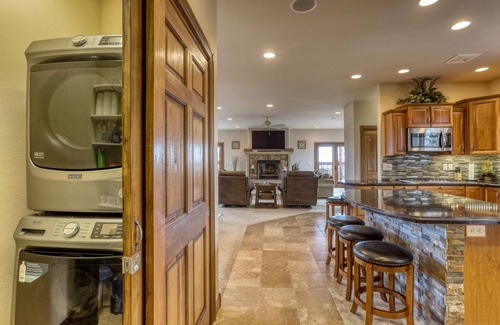 There are 2 spacious bedrooms and 2 full baths on the main level. The master bedroom is fabulous with a gas fireplace separating a comfy sitting area with flat screen TV and an ensuite master bath. The 2nd bedroom upstairs has beautiful queen-size 4-poster bed.