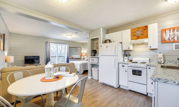 Lake days are right around the corner when you book this vacation rental in Cape Fair. Tucked right off the shore of Table Rock Lake, this 1-bath studio cottage makes it easy to start and end your days on the water. You'll have access to an on-site dock, kayak rentals, and hiking trails, giving everyone something to explore! After a day outdoors, grill a delicious dinner on the deck.