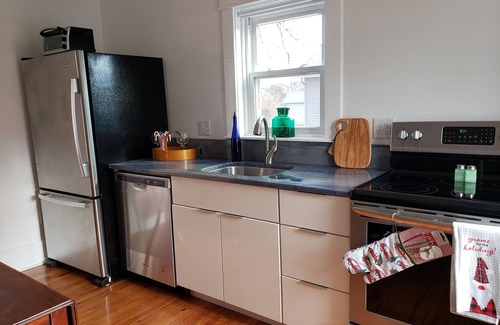 Bear Escape, a cute, very little (650 sq ft.) cottage gives you all the conveniences of a modern, two bedroom home, with spa bathroom ( BUT you do need to go through the primary bedroom to get to the ONLY bathroom) and fantastically appointed new kitchen, in the peaceful atmosphere of Virginia's Shenandoah Valley, right on the South Fork of the Shenandoah River.