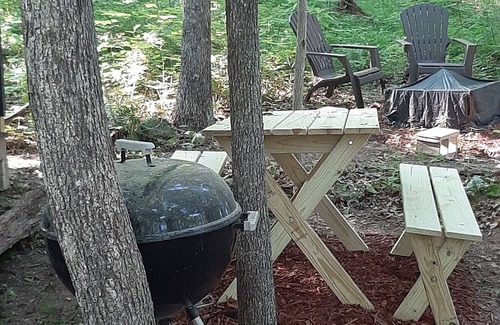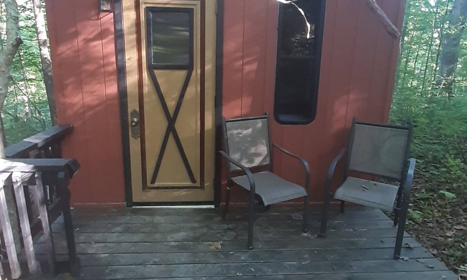 This picturious wooden views from your tiny cabin will simplify life and the tranquility of the sights, buzzing and churps of nature. Wether it's a whiperwil, crickets or the passing of deer it is Woodland experiences . Enjoy outdoor cooking on your charcoal grill and smores by night sitting in your Adirondack chairs by your cabins firepit. Games including corn hole, tether ball and ladder ball toss . Also indoor card games and board games. Also will set up a scavenger hunt and activity game upon request and only offered for Thursday and Sunday night stays $5 of fun and laughter . Snack packages available , at site great experience packages includes for 2 guest which includes : Sweet campfire treats- smores package $10.00 includes package of gram crackers, 2 choclate candy bars and bag of marshmallows. Also Cowboy dinner- includes package of hot dogs, buns , pork and beans and bag of chips all for $15; Midnight Munch pack- includes chips, nuts, drinks ( soda or juice) $10; Outdoor Wake-up breakfast- packaged 2 breakfast sandwiches , OJ or coffee , try your skills with eggs on the grill and just $20. Also Simplistic breakfast- includes instant coffee and Danishes and apple or bananna . for $15. All packages will be provided with pans needed to make your food... no worries! Packages pay on-site when you arrive , but pre-order so we can have them ready for you! Email or call for these request.