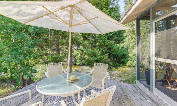 Welcome to this 'Wild Willie’s' hideout, a quirky 2-bed, 2-bath vacation rental cabin nestled in Sula, MT! Read a book by the stone fireplace or sip coffee on the screened patio while you listen to the soothing river and take in the beautiful Bitterroot National Forest scenery. Going out? Hit the slopes at Lost Trail Ski Area in the winter!