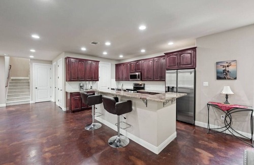 Welcome to our charming two-story hideaway nestled just minutes away from the Lake Travis and Lake Austin junction. Sleeping 8 guests, our spacious retreat offers the perfect blend of comfort and convenience. The front yard boasts a serene creek, adding to the tranquil ambiance of the surroundings. Whether you're seeking adventure on the lake or a peaceful retreat in nature, our home promises an unforgettable stay.
