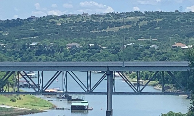 Discover the beauty of Spicewood from this three bedroom house with a view of the Pedernales River and bridge. The home has one king bed in the master, one queen bed in the second bedroom, and one bunk bed (single over double)in the other bedroom. The master bath features two sinks, walk in closet and deep free standing soaking tub. The two bedrooms at the opposite end of the home feature a Jack and Jill with individual vanities. Plus, there's an office space with a sofa bed for extra comfort. Relax on the 1400 square foot back porch and enjoy the beautiful sunrise or in the evening to watch the sun illuminate the bridge above the water. We'll be available to answer any questions while you stay at our place.