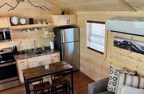 Experience a laid back lifestyle at Hill Haven, our brand new tiny home nestled just outside of the beautiful Red River Gorge. Ideal for couples or a family of four, enjoy the comforts of an open-concept layout, a queen bedroom, a loft with twin beds, and cozy living space with a Roku flatscreen TV. Stay connected with fast Wi-Fi or relish in the solitude of the forest. Savor the every meal with amenities of a fully-equipped kitchen.