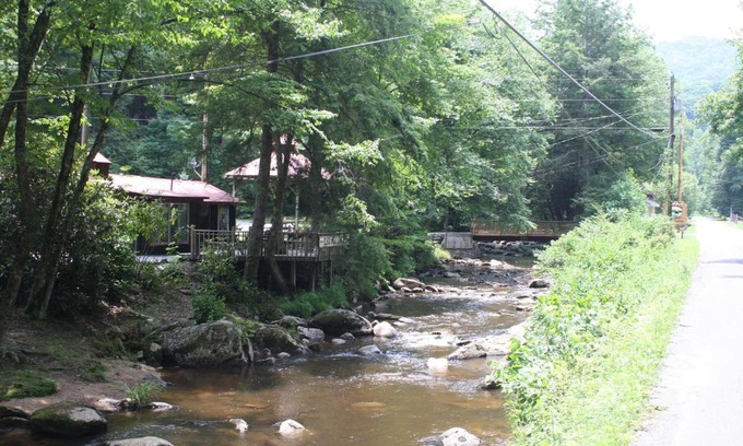 - Private Waterfront property with Mountains surrounding the Loft on the Doe River