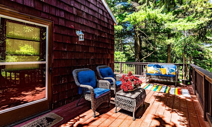 Spectacular mountain views and 35 private wooded acres make this cottage a dream to visit.Nature right outside the front door. Our wildlife habitat is home to deer, turkey, birds & Eastern cottontail. It is delicious, refreshing, and truly healing. Minutes from Route 15, Woodstock and Phoenicia, it's the perfect location for couples, groups or families looking to explore the region. Definitely kid-friendly. Pool is closed because of Covid and will remain close this year.