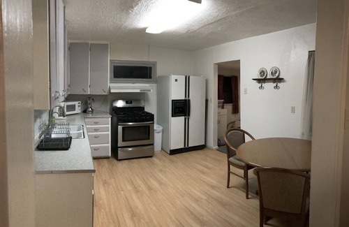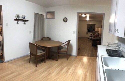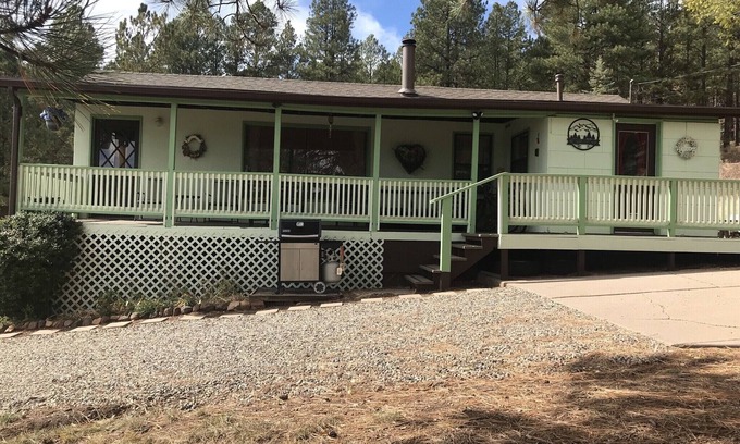 CLEAN, COZY HOME IN A FRIENDLY, QUIET NEIGHBORHOOD FOR 4 ADULTS MAXIMUM (5 GUESTS WITH CHILDREN). THE HOME IS ON 3/4 OF AN ACRE, PROVIDING LOTS OF SPACE FOR OUTSIDE FAMILY TIME. PICNIC OUTSIDE IN THE SUMMER OR BUILD A SNOWMAN IN THE WINTER. IT IS BORDERED ON ONE SIDE WITH FLAGSTAFF'S BEAUTIFUL PONDEROSA PINE TREES. A SPACIOUS PORCH OVERLOOKS THE HILLSIDE AND THE DELL. WE HAVE SUPPLIED EVERYTHING TO MAKE YOUR STAY FEEL LIKE YOU ARE TRULY AT HOME.