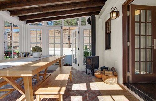 HILLSIDE HACIENDA is in the ideal location, only blocks to the downtown core which features renowned restaurants and the park square. This Spanish bungalowis located on desirable Chestnut Street on the west side of Paso Robles. This two bedroom, two bath home has been recently built with a Spanish flair. The kitchen is fully-stocked and features quartz countertops and subway tile with an adorable bistro table for two. An attached sunroom allows dining for six. This lovely home is in a quiet neighborhood, and sits on a hill overlooking downtown.