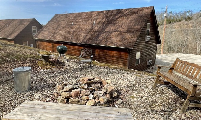 Beautiful Duplex! Needing space for a bigger group? Book both sides. Conveniently located 2 bedroom 2 bath Cabin sitting on the edge of town just 1/2 mile from the water! Everything you might need for a weekend or weeks stay. This Cabin is perfect for you. Tucked off of highway 60 you right across the road from town. Grocery stores, gas stations, restaurants, and public water access are just out the door. Do not let the convenience of town take over. This cozy cabin is nestled on a hillside full of beautiful oaks, hickory, and pine trees. Enjoy the views and accessibility with us!