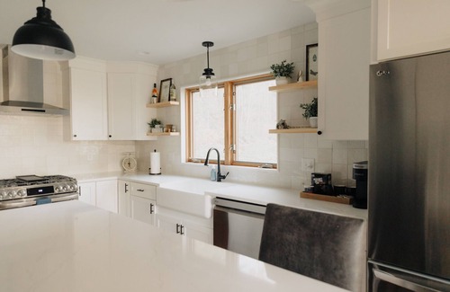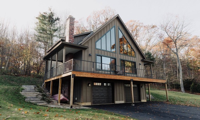 Prepare for the perfect New England getaway when you book this Massachusetts lake retreat in West Brookfield! Bring friends & family and relax in this beautiful 3-bedroom, 2-bathroom vacation rental house boasting 1,700 square feet of open concept space and a wraparound porch. Your group of 7-8 people will have walking access to the lake and outdoor fire pit for evenings under the stars.