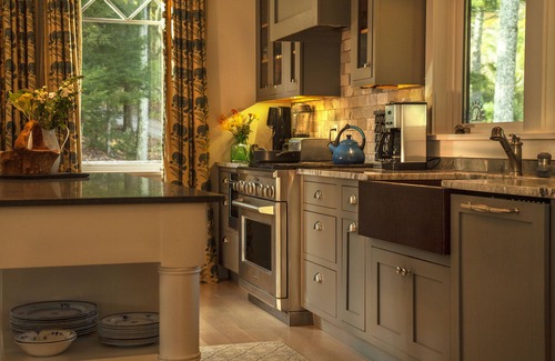 This 4,000 sq ft brown shingled home was built in 2015 as a family retreat and includes a stone clad in-floor heated large entry hall, an open concept main floor complete with a chef's kitchen and granite countertops/island, six burner gas stove, three sided glass fireplace, central air conditioning, a large dining table and comfortable sofas and chairs. Upstairs features a full-sized laundry room and large carpeted playroom complete with a desk, built-in game nook, TV, games and toys. All stairs include wood built-in baby gates. BBQ, Fire Pit and picnic table. The home sits on a ledge across a lawn from The Swedish Chalet (3 bedroom /3 bath) with plenty of separation. Rent one house, or both for your family retreat.