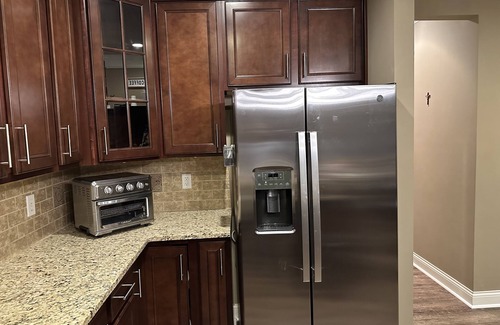 The house is equipped with modern amenities, including a gourmet kitchen, two dining rooms, and five smart TVs. Indulge in a variety of entertainment options or simply bask in the tranquility of our serene surroundings. Don't miss the wet bar for a touch of luxury.