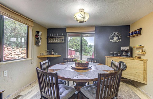 Very Private with no one behind you but Wilderness. 3 Bedrooms, with 2 of them having ensuite bathrooms. Amazing Loft with Mini Cabin Double Bed, Buck Hunter Arcade Game and Desk if you need Office space. Large Kitchen with Granite Countertops, Knotty Hickory Cabinets, Built in Coffee Bar/Wine Bar and seating for 6 at the Table and 3 more at the Eat in Kitchen Bar. The living room has a Massive 10ft x 14ft sectional couch which makes for a perfect place to relax and enjoy the view, curl up in front of the wood stove or watch Netflix on the 70 in Tv. Multiple outdoor areas to enjoy the views from the Huge Gazebo & Fire Pit area that has amazing privacy. Or the Wrap around Deck with a Blackstone BBQ Griddle and seating for 10. Enjoy Dinners on the Deck while overlooking the Valley and Playing Horseshoes in the front Yard. Large driveway for parking, Basketball or Corn Hole. Endless Off Road trails for your Side by Side/UTV, Atv as well as Pie Bar, Mamajoe's Italian Grill, Sportsmans Chalet & Bandits Restaurant are less than a 2mi ride in either direction. Not to mention the Best Wood Fired Pizza at Old COuntry Inn as well as 9 other Restaurants, Local grocery Store, Shops, Ice Cream, Coffee Bars, Kettle Corn and Amazing hospitality. Enjoy all Pine & Strawberry have to offer. Tonto Natural Bridge, Mongolian Rim, Fossil Creek Water fall, Hiking Trail. Be sure to take some Pics of the Elk as they are a Huge part of our community as well.