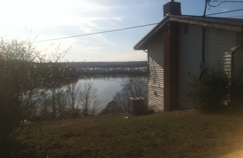 Cozy Hilltop house has been completely redecorated. The house is overlooking Kentucky lake. House has a total of three bedrooms, two of which are on the ground floor...each with a double bed. A large family bedroom is located in the daylight basement. It houses two king-sized beds as well as a fold out sofa bed chairs, and bedroom furniture. Our house sleeps 10. We have added a 3rd bathroom on this level. It also has dish for tv and a DVD player.Sorry, we do not have WiFi. The house has two bedrooms on the ground floor with a bathtub with shower in one bath and a shower in the other bathroom.The large living room has two sectional sofas and a chair. We have dish tv. Cell reception is spotty but usually available on the deck. Again, no WiFi is offered. The dining table seats six people and there are extra stools and a bar table as well. The kitchen is modern with new appliances. It is fully stocked with cookware and dishes. We do not have a dishwasher. Bottled water is provided free. The deck has a large picnic table with built in seating. There are several deck chairs as well. A fireplace and charcoal grill and fire pit are provided for guests to enjoy too! The house is located about thirteen miles from Waverly where food can be purchased. The neighborhood is safe and quiet. Family members live across the street. A public acess for loading and unloading boats is a short distance away at the foot of hill. A washer and dryer are available for use by our guests. They are located in the basement. Beginning Oct 1, 2021 no pets will be allowed. . Rates are $195. per night with a two night stay required. A $100 cleaning fee is required. Relaxation is what this home is about. From the deck one can usually view eagles and small wildlife. The view is amazing! If you like to fish or boat and have equipment then this place is for you. Guest may launch boat from public access at the foot of the hill but we do not own a dock. Boats would need to be pulled out and parked on our property after use. Our place has a million-dollar view from the deck!