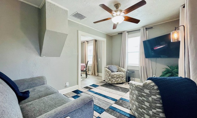 A 2-bedroom historic homestead in Sioux Falls, SD, blending timeless charm with modern comforts. Located near The Premier Center, FSD, and Downtown this cozy retreat features a patriotic theme and comfortably accommodates up to 6 adults.