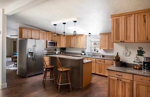 Hilltop Hideaway /10 acres - Family Friendly, Ski, Golf, Views Fun starts here has 4 Bedrooms , 2 Bathrooms, and max occupancy of 10 people. The minimum rental for this property is 1 nights, but this can change depending on the season you plan on staying. Previous guests have given good rated it, and VRBO labeled it a top-rated House because of the excellent services rendered by the owner or manager of this House, and has consistently provided great experiences for their guests. Most families or guests that use it recommend it to their friends and some of them are repeat guests. House has a friendly neighborhood, and the Garden City has interesting places to visit. If you want to learn more about the House in Garden City, such as places to visit and things to do nearby, you can check below to learn more.
