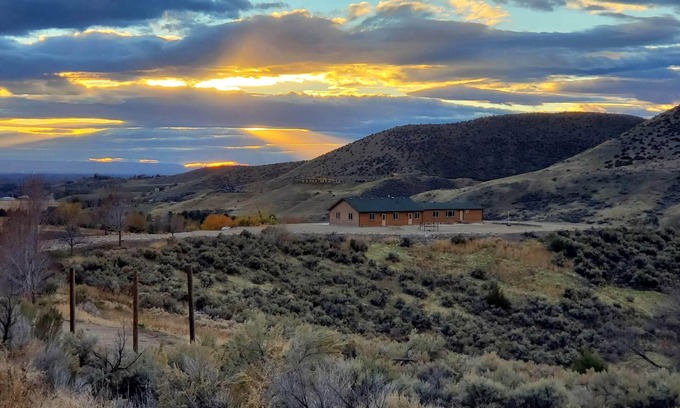 The panoramic views from this property are stunning! The sunrise and sunset views are magical as well as the views of Bogus Basin, our local ski area. Patio chairs available to catch a mountain top sunrise or watch the sunset light up the Treasure Valley while warming yourself around the fire pit. The house is spacious enough to sleep 8 with plenty of room to spare. Upon request there is a blow up queen mattress to sleep an additional 1-2 people. Boise Hilltop Hideaway is equipped with high-speed internet, full kitchen, BBQ, 4 bedrooms and plenty of parking. The remote setting on 10 acres with unending views all while having Eagle and Boise shopping, dining and restaurants just around the corner ensures something for everyone. You may even want to venture out and visit a local coffee shop, winery, or brewery to see if you can find something new to suit your taste.