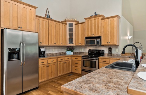 Relaxing Living Spaces: As you enter, you'll be greeted by a beautifully decorated living room complete with an open concept. It's the perfect place to unwind, whether it's after a long day on the lake or to enjoy the warmth of a cozy fire in the fireplace on a cool winter evening or smores around the campfire. A fully equipped kitchen for your ultimate cooking convenience.