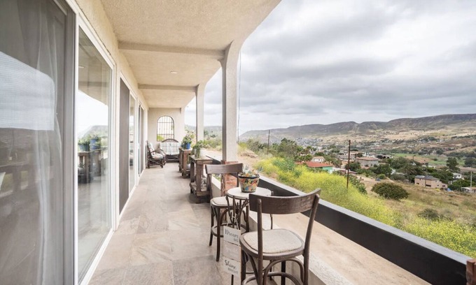 This immaculate, quiet mountain home, sits at the center of the valley of La Mision community overlooking the 15 paths of the fastest grows famous Valkey of Guadalupe wine country. 10 minutes from playa la mission