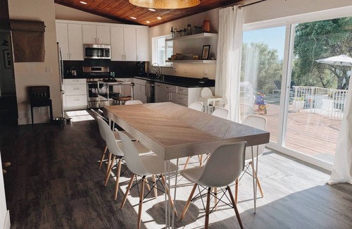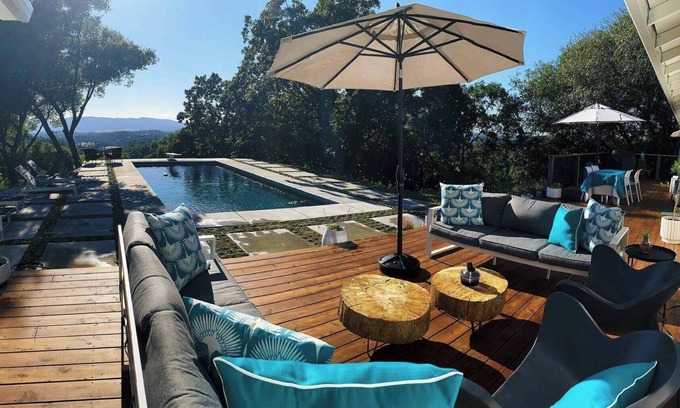 4 Bedrooms. 3 Baths. (1 King, 2 queens, 2 bunk beds, full size sofa bed) Relax around the pool and enjoy stunning, mountaintop views from our newest addition! Enjoy an outback retreat...while being only 4 miles from downtown Murphys (one mile of gravel road). This amazing home was completely renovated by its new owner and has been professionally decorated. The interior has unique, thoughtful art pieces throughout.