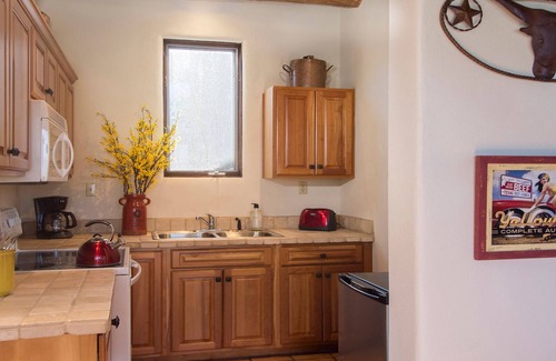 The multiple outdoor spaces with saltwater pool, hot tub and decks are unparalleled in Santa Fe. The pool area includes a large covered portal, gas grill, outdoor dining and chaises to relax or entertain in peaceful tranquility. Plenty of pool towels and pool accessories are provided. (The pool is open from sometime in May-September, weather permitting.) It is truly a secluded oasis combining water, desert, hills, and vistas.