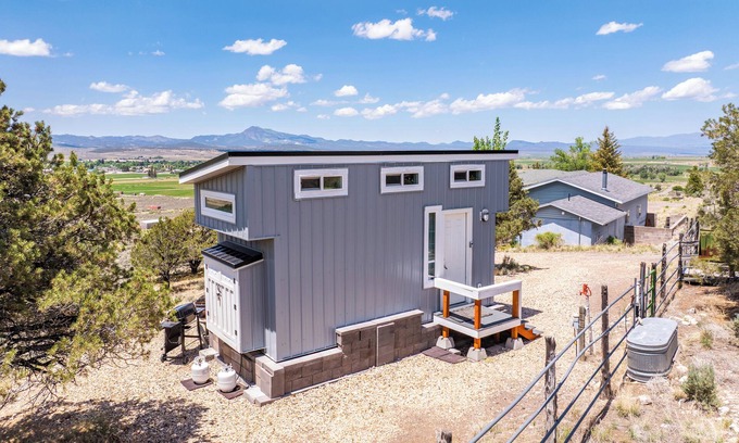 New Tiny Home! Perched on a hilltop overlooking the charming farming community of Panguitch. Secluded with incredible views in every direction. Sleep 3-4 comfortably. Those wanting an amazing experience can step out front door a few yards and sleep under "world renowned" night sky in the hammocks. Just 20 minutes to Bryce Canyon! Also find wonderful hikes/rides right outside the front door on endless acres of open BLM land with trails, fishing streams, wildlife, and much more!