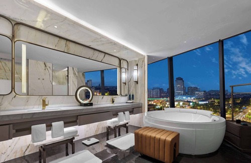 Hilton Changshu offers 326 air-conditioned accommodations with minibars and safes. Each accommodation is individually furnished and decorated. Beds feature down comforters and premium bedding. A pillow menu is available. Televisions come with satellite channels. Bathrooms include bathtubs or showers with rainfall showerheads, bathrobes, slippers, and designer toiletries.
