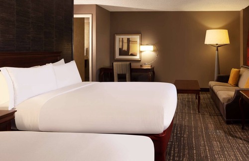 The Hilton Fort Worth boasts a range of exceptional amenities designed to enhance your wedding experience. The hotel features beautifully appointed event spaces, perfect for hosting both intimate gatherings and grand celebrations. Enjoy signature dining options at the hotel's restaurant, while guests can relax at the chic bar/lounge or indulge in a delightful snack from the deli. Each of the 294 air-conditioned accommodations are thoughtfully designed with separate sitting areas, pillowtop beds, and luxurious linens, ensuring complete comfort for you and your wedding party. Additional perks include complimentary high-speed Internet access, daily housekeeping, and a fully-equipped 24-hour fitness center, so you can remain energized throughout your festivities.