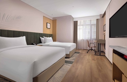 Hilton Garden Inn Harbin Haxi offers 135 accommodations with complimentary bottled water and slippers. Each accommodation is individually furnished. Beds feature down comforters and premium bedding. A pillow menu is available. 55-inch LCD televisions come with digital channels. Bathrooms include designer toiletries, complimentary toiletries, hair dryers, and children's slippers.