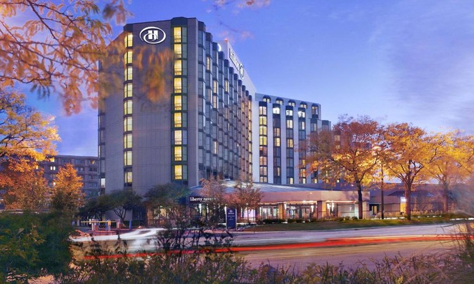 This Rosemont hotel is less than 3 miles from O'Hare International Airport. Free 24-hour airport shuttle service, an indoor swimming pool with panoramic Chicago skyline views and an on-site restaurant are offered. Hilton Rosemont/Chicago O'Hare features a 37-inch flat-screen TV and an alarm clock with MP3 connectivity. Guests will enjoy a down duvet and pillows. Designer bath amenities are also included. The hotel offers versatile meeting space and a grand ballroom. The 24-hour fitness center is fully equipped for your workout needs. Liberty Tavern serves all-American favorites. The Liberty Tavern Lounge features refreshing cocktails and also offers room service. The Donald E. Stephens Convention Center is across the street from the Rosemont Hilton O'Hare. Downtown Chicago is a 25-minute drive from the hotel.