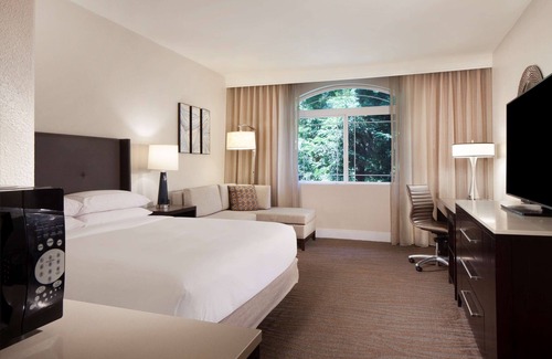 Hilton Santa Cruz/Scotts Valley offers 178 accommodations with MP3 docking stations and laptop-compatible safes. Pillowtop beds feature premium bedding. Guests can make use of the in-room refrigerators, microwaves, and coffee/tea makers. Bathrooms include complimentary toiletries and hair dryers.