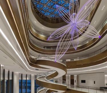 Hilton Shanghai Hongqiao International Airport has a fitness center, terrace, a restaurant and bar in Shanghai. Located in the Changning District district, the property provides guests with an indoor pool. The property has a 24-hour front desk, airport transportation, room service and free WiFi. The hotel will provide guests with air-conditioned rooms with a desk, a safety deposit box, a TV, a balcony and a private bathroom with a shower. All rooms will provide guests with a fridge. Guests at Hilton Shanghai Hongqiao International Airport can enjoy a buffet breakfast. Jing'an Temple is 6.9 miles from the accommodation, while Longhua Temple is 7.7 miles from the property. Shanghai Hongqiao International Airport is 0.6 miles away.