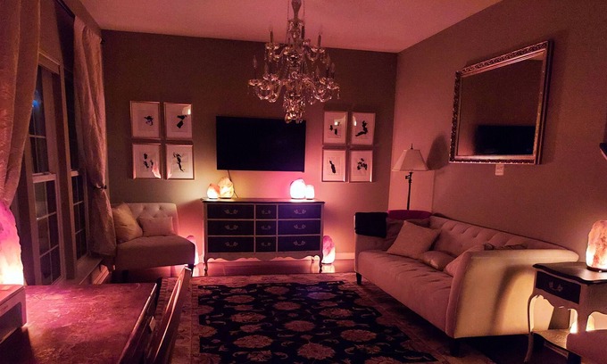 Immerse into a himalayan salt Halo Therapy experience in the master king bedroom with sleep number bed. And enjoy an Instagramable salt bath in the private spacious master tub. A bag of complimentary Himalayan salt bath blend is provided with each booking.
