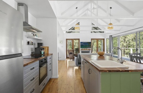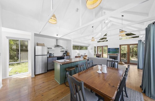With grand cathedral ceilings, a crackling Jindara fireplace (seasonal) and seamless indoor-outdoor living, it's the perfect getaway for a couple or group of up 4 guests. Property equipped with a TV, RC A/C and outdoor BBQ on the deck.
