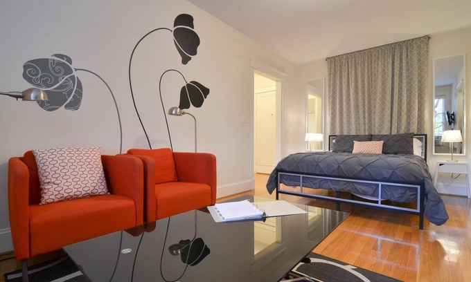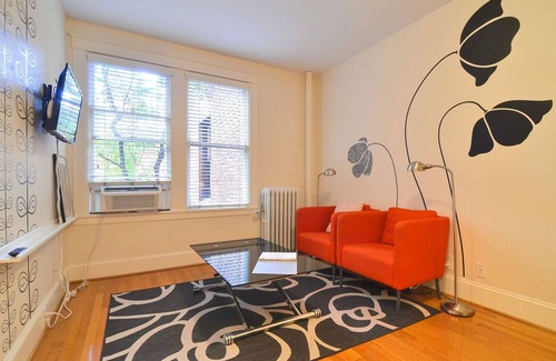 We call this lovely flat the Jewel Box. Filled with charm and all you need for a fabulous extended urban experience. The windows open onto a courtyard, letting in light and shielding you from city noise. Step outside and it’s a quick walk to the sites, great dining, music and more. This first floor condo includes air conditioning and is 2.5 blocks from Whole Foods and 1 block from an Amazon Go, the ultimate in contact free shopping. We have weekly and monthly discounts to make an extended stay affordable. Bookings of 28+ days avoid the 10% city hotel taxes, this is just the law but knowing can save you.