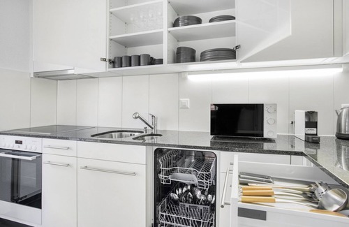 Thoughtfully designed with bespoke finishes, modern furnishings, and a fully equipped kitchen, you’ll enjoy that “I’m home” feeling with this Blueground apartment. Whether you’re lounging in your spacious living room streaming the latest and greatest entertainment on the smart TV or premium wireless speaker, or getting some well-earned rest on the superior quality mattress with luxury linens, you’ll fall in love with everything this Wollishofen apartment has to offer.