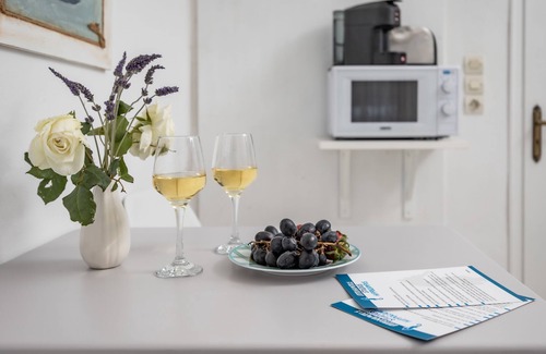 The Two-Bedroom Apartment at Hippocampus Studios offers a comfortable and airy space, perfect for a relaxing stay. This apartment includes two bedrooms, two bathrooms, and a convenient kitchenette for light meal preparation. Guests can unwind on the private terrace with charming city view, while amenities like air conditioning, a washing machine, and a flat-screen TV add to the comfort of this inviting retreat.