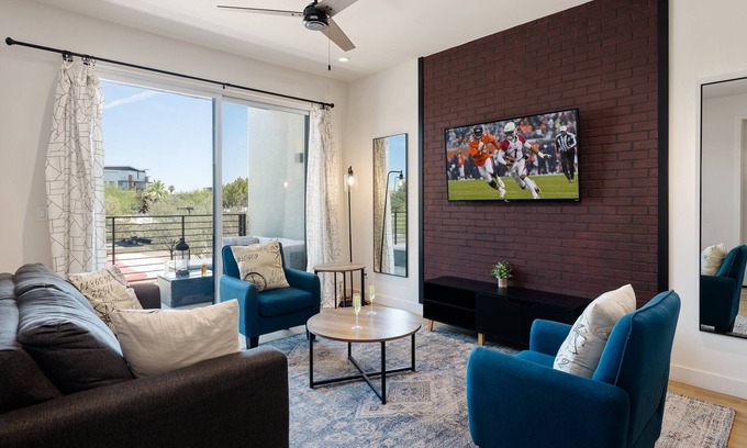 Welcome to HiRise, your modern condo in the heart of Old Town Scottsdale! Enjoy the best of urban living with a 2-story unit featuring a fully equipped kitchen, high-end Cafe appliances, private balconies, and Smart TVs in every room. Perfect for vacationers, golf enthusiasts, and urban explorers, this rental offers top-notch communal amenities including a hot tub, BBQ grill, and clubhouse. Ideal for a stylish and comfortable stay in AZ.
