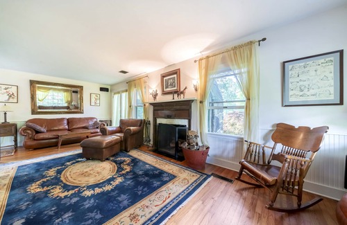 Nature lover's paradise sleeps 6. Relax in this private yet convenient, fully equipped 3 bedroom 1 1/2 bath country escape. Just minutes from historic Milford, PA and steps to 70,000 federal acres of nature at its best. Enjoy hiking, skiing, Delaware river trips, horseback riding, fishing, hunting, and more only 11/2 hours from NYC. The stone patio overlooking the ponds and waterfall is an ideal spot to grill up a fresh caught catfish from the stocked pond. The perfect getaway. Every window in this country classic, features a beautiful nature view. The living room has a cozy fireplace, wood floors and a modern entertainment center. The kitchen has a commercial stove with griddle for the gourmet in the group. Just bring the wine. We are a child friendly place and will consider your well behaved dog.