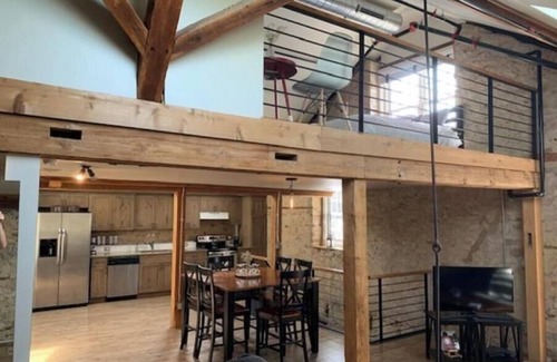 The Palmer House Stable offers an unparalleled destination experience with lodging in our historic stable HayLoft. Fully furnished with all the essentials for a weekend of luxury living, which includes an open 2-story master bedroom ensuite overlooking the great room and kitchen area with a tiled soaking tub and skylights sleeping up to 6 guests.