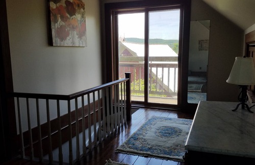 Tastefully restored and maintained property central to all of Vermont on quaint dirt road, with alpacas in pastures, chickens and ducks to feed. Furnished with antiques and full compliment of kitchen and laundry appliances and equipment, outdoor grill. Incredible Views into the Adirondack mountains, and across slate roof from 3 story deck. Only 15 min to Middlebury College ( you can spend that much time crossing town), nearby country stores and Lake Champlain bridge to heart of Adk's for side trips. Maybe even try some just laid, home raised eggs!