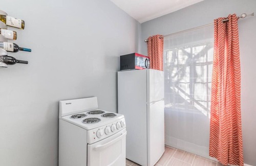 Guests have access to all the amenities of a full house. A kitchen that includes a brand new oven/stove, refrigerator, microwave, and Kreuig. We offer complementary coffee and water. We also offer convenient coded locks which make checking in a breeze.