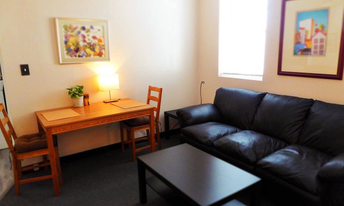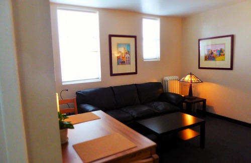A charming and quaint historic apartment set among beautiful gardens, fruit trees and a Park. A cozy and bright space filled with original works of art, the apartment offers a retreat-like setting for guests. The Bamberger Apartment is part of the historic Bamberger Station Hotel, a now historic center in North Salt Lake. The Bamberger Apartment is conveniently located to downtown Salt Lake City and Bountiful, bus lines, SLC airport and many restaurants.