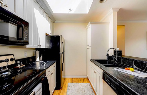 Spend an evening in your own cozy 'home away from home’. The kitchen is fully equipped and stocked with all the housewares, small appliances, and spices you might need to prepare a gourmet meal. Enjoy dinner or morning coffee or espresso in the dining room, on the balcony overlooking the Flatirons, or outside under the stars on your 20’ furnished rooftop deck. Each bedroom has a queen bed, AC, a full bath and high-end furnishings including percale bedding, mattress toppers, lush towels, and more. Both the living room and master bedroom have Cable TV, Netflix, HBO and Roku. A stacked washer/dryer, AC units, underground garage parking, a locked garage storage closet, & both elevator and stair access to our 3rd floor condo are wonderful bonuses. Our property is also cleaned and maintained with unscented products. If you are here for work, we have highspeed internet throughout the apartment and a dedicated office alcove off the living room with amazing views of the Flatiron mountains and a wireless printer. Our condo is in an historic downtown Boulder residential area. We appreciate and cater to discerning travelers who look for the convenience, style, and diversity this unique neighborhood offers. It's the perfect place to escape your everyday routine while enjoying Colorado's famous year-round sunshine. We are not meant to be a 'party property’ so please make other plans if that is your intended use. Guests need to be 21 and over. We do not permit pets or smoking inside the apt. If you indulge in Cannabis, please use rooftop deck. We hope to see you soon!