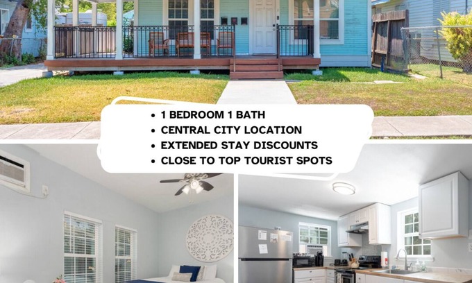🌞 Sunny Bungalow by The Bay - Your Perfect Corpus Christi Getaway presented by Presana Homes! This cozy 1 bedroom bungalow will be the perfect escape to the coast for you. We offer extended stay discounts if you stay a week or longer too. Call our bungalow your home away from home while in Corpus Christi. Please note this is a historic bungalow that's been remodeled over time but has kept a lot of its historic charm. This home was originally built in 1923 and is over 100 years old. This is a bungalow duplex with 2 separate apartments under one roof. This duplex is approximately 600 square feet and is a separate space from Unit # 1.