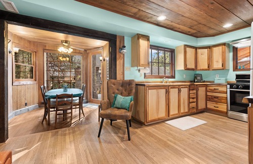 Please note, the stairs to the second floor are quite steep and narrow. We recommend using the handrails and taking extra care while going up or down. There are some charming, yet uneven, rock paths around the cabin, as well as steps outside each exterior door. We encourage you to move carefully while you enjoy the beautiful surroundings.
