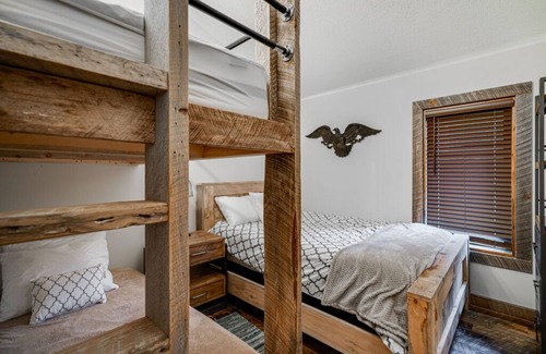 Bedroom Five: One queen bed plus twin bunk beds with single beds