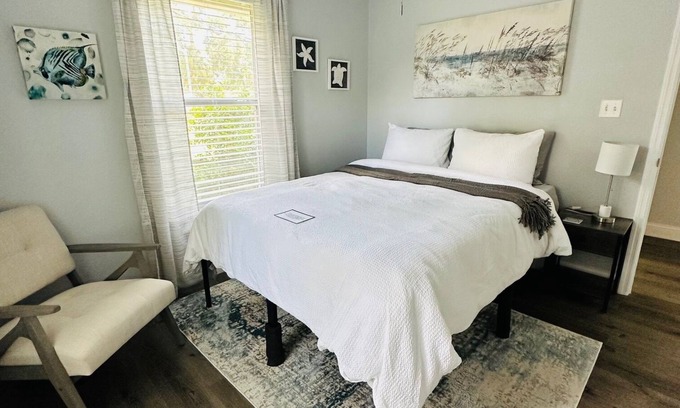 Experience the perfect blend of historic charm and modern comfort in our beautifully remodeled 1920s Carriage House. This inviting UPSTAIRS unit offers everything you need for a relaxing and convenient stay.